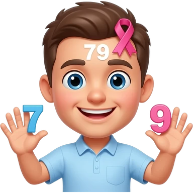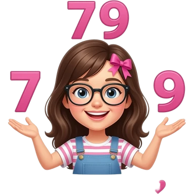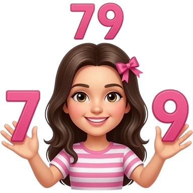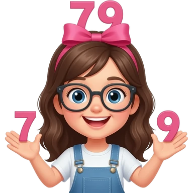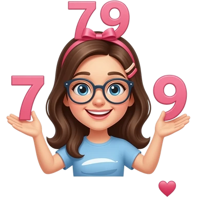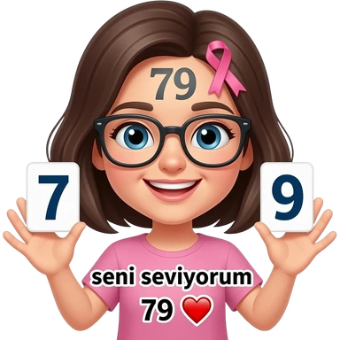 Şimdi senden gülen bir yüz ve bir elinde 7 bir elindede 9 olsun başını tam üstünede 79 istiyorum başının föşesine bir pembe kurdele koy ama kız olsun ve gözlük taksın ve alta şunu yaz seni seviyorum 79 ❤️ emoji