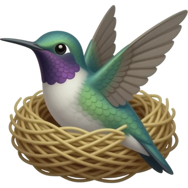 Pink sparkly bird sitting in birds nest with eggs emoji