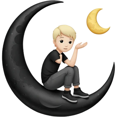 silhouette graphic of a boy sitting on a crescent moon, generate in emoji so I can use in chatting emoji