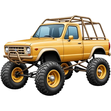 Off road Race truck whose frame and detailed suspension is made of shopping cart material with padded roll cage, roof rack, winch, and antique style handmade bodywork (survivalist style) emoji