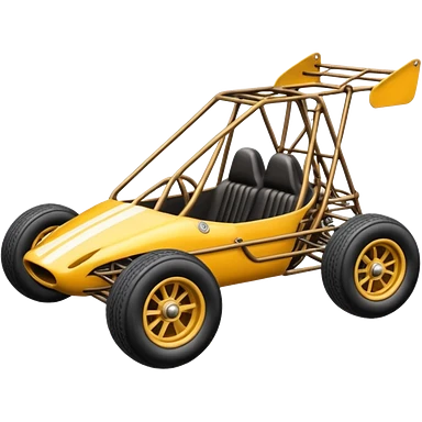 Race car whose frame and detailed suspension is made of shopping cart material with padded roll cage and antique style handmade bodywork emoji