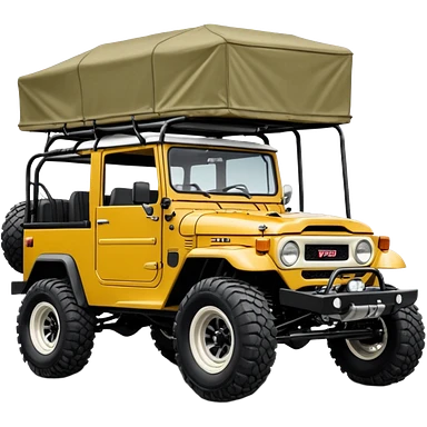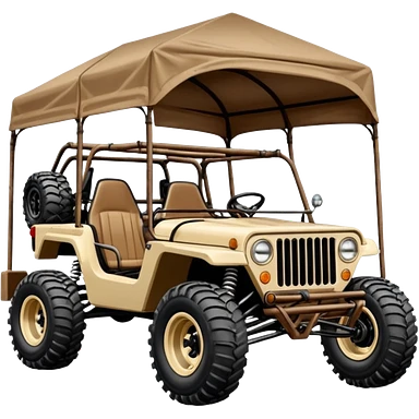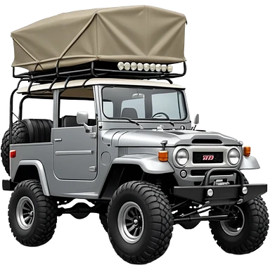 Well-equipped Off road Racing fj40 car whose frame and detailed suspension is made of shopping cart material with padded roll cage, huge roof rack, winch, and antique style handmade bodywork (survivalist style) emoji