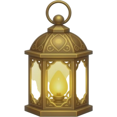 A tiny ornate lantern glowing with warm golden light, surrounded by soft sparkles and a whimsical enchanted look. emoji