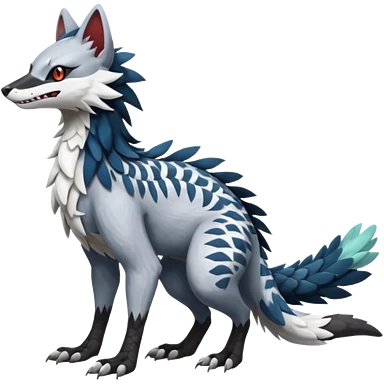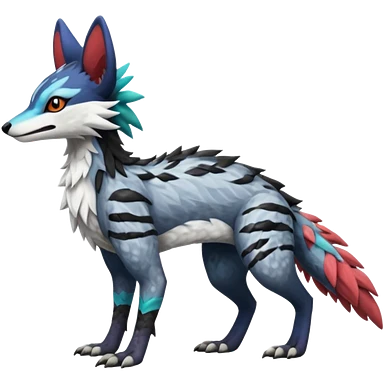 Colorful Silvally-Coywolf-Dingo-Aardwolf-Nargacuga-Trico-Genet-fusion-animal-hybrid-creature, full body emoji