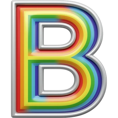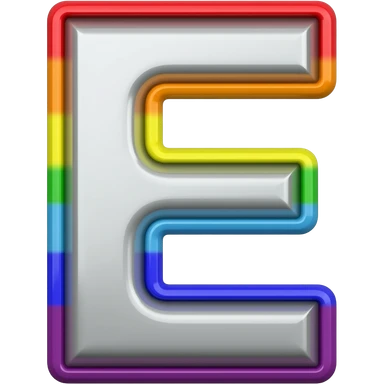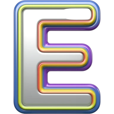 name "E" in silver, 3D style typography lettering, each color of the rainbow as a border outlined around each letter, isolated, 3d rendering, no emoji icons no emoji faces and must have no human figures emoji
