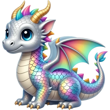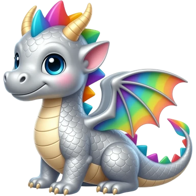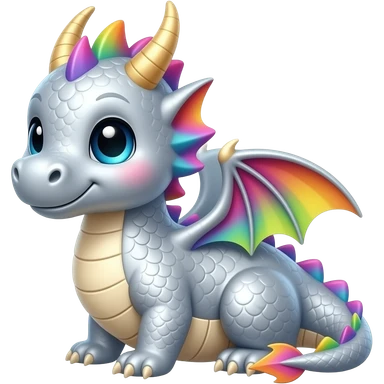 Silver and Rainbow cute baby dragon emoji