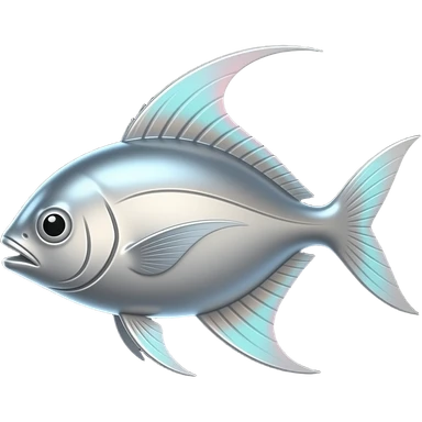 Silver fish, black background, high contrast, mostly monochrome, minimalist futuristic design, metallic texture, smooth surface, smooth texture with soft neon hues, smooth, futuristic, minimalist emoji