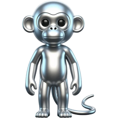 Silver monkey , black background, high contrast, mostly monochrome, minimalist futuristic design, metallic texture, smooth surface, smooth texture with soft neon hues, smooth, futuristic, minimalist emoji