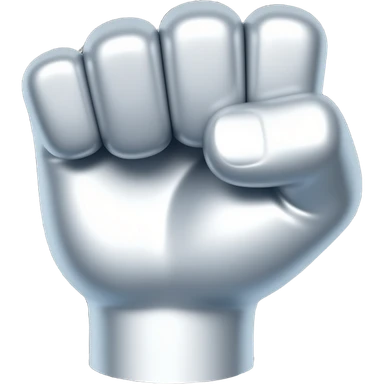 Silver fist, black background, high contrast, mostly monochrome, minimalist futuristic design, metallic texture, smooth surface, smooth texture with soft neon hues, smooth, futuristic, minimalist emoji