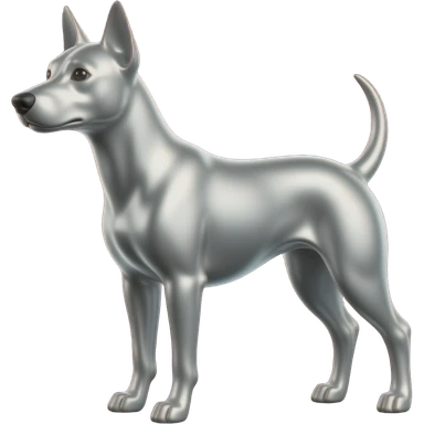 Silver dog, black background, high contrast, mostly monochrome, minimalist futuristic design, metallic texture, smooth surface, smooth texture with soft neon hues, smooth, futuristic, minimalist emoji