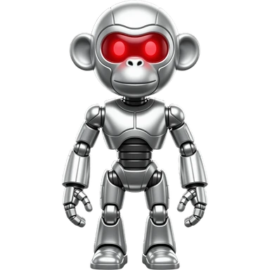 Silver robotis monkey, red ice , black background, high contrast, mostly monochrome, minimalist futuristic design, metallic texture, smooth surface, smooth texture with soft neon hues, smooth, futuristic, minimalist emoji