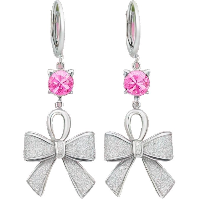Silver diamond earrings with a bow in pink emoji | AI Emoji Generator