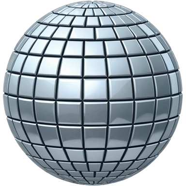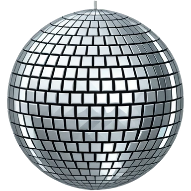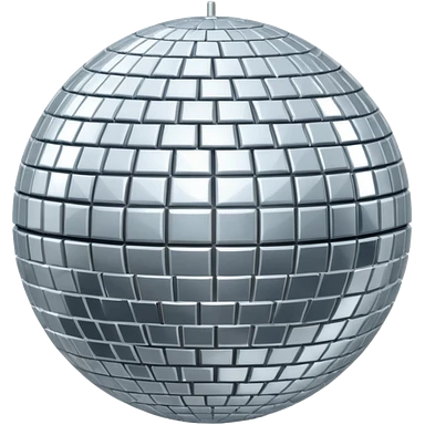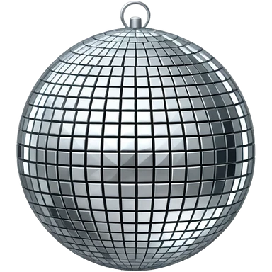 A glittering silver disco ball with detailed mirrored panels reflecting rainbow colours. Add beams of light radiating outward against a dark background. emoji