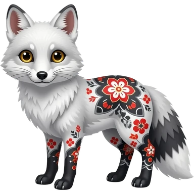 Albino Arctic Fox with red black and grey markings and golden eyes oriental shiny smooth glossy soft Japanese marked patterned emoji