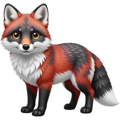 Silver Fox with red black and grey markings and golden eyes oriental shiny smooth glossy soft Japanese marked patterned emoji | AI Emoji Generator