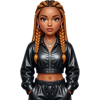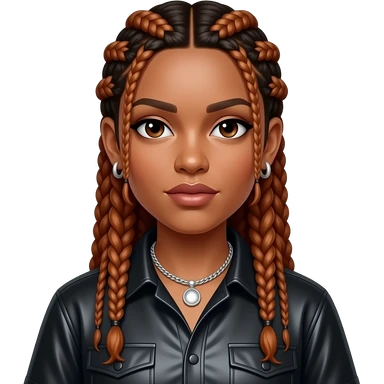 Da Brat, Female Rapper with long copper braided hair, black metallic shirt, silver necklace and earrings emoji