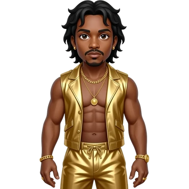 MC Hammer, Rapper with dark brown eyes, black hair, gold metallic vest, gold metallic baggy harem pants, shirtless with gold necklace and earrings emoji