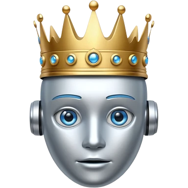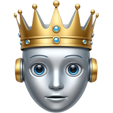 silver robot with blue eyes with golden crown emoji | AI Emoji Generator