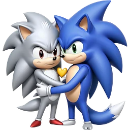 Sonic the Hedgehog and Silver the Hedgehog hugging each other emoji