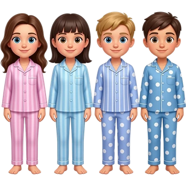 2 girls and 2 boys in pjs emoji