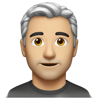 a white man with a light stubble and long black silverish hair and golden rimmed round glasses emoji