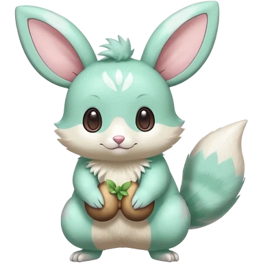 Kawaii Shiny Colorful Pastel Minty Green Minccino-Furret-Emolga-Eevee-fusion Full Body emoji