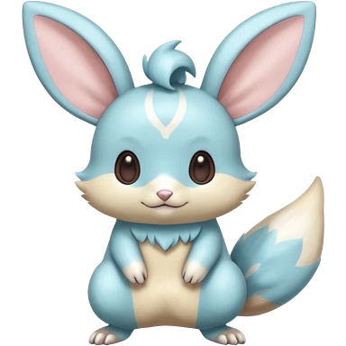 Kawaii Shiny Colorful Pastel Minty Blue Minccino-Furret-Emolga-Eevee-fusion Full Body emoji