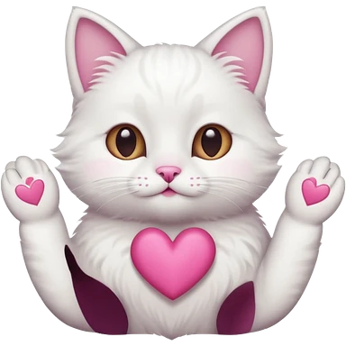 Cute white cat making heart shape with his hand above the head like this🙆♂️ emoji