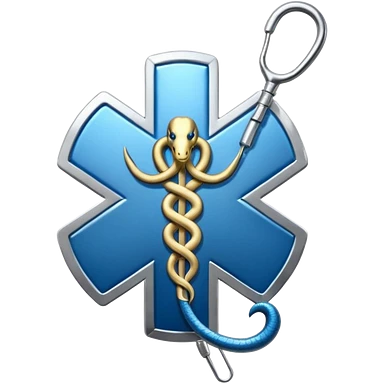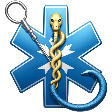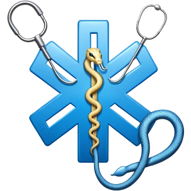 simple blue medical star of life symbol with white rod and snake emblem emoji