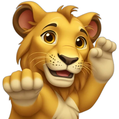 Simba from the cartoon The Lion King as a child, dressed in a panda suit, sitting on his hind legs and waving his front paw like a lucky cat. emoji