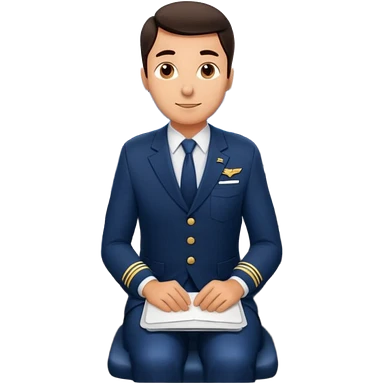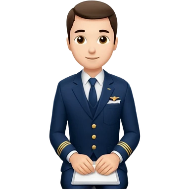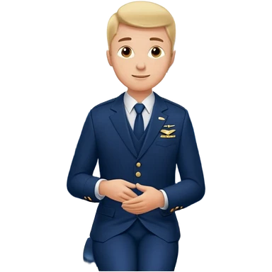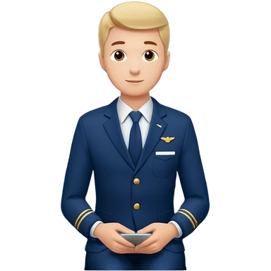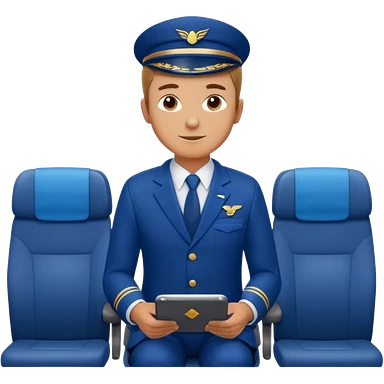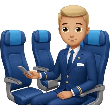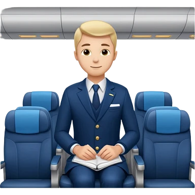 A male courteous flight attendant checking seat rows with a polite, attentive posture. emoji
