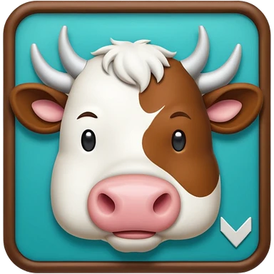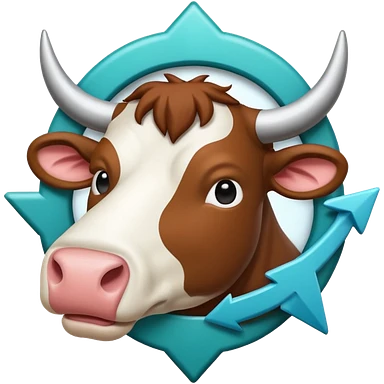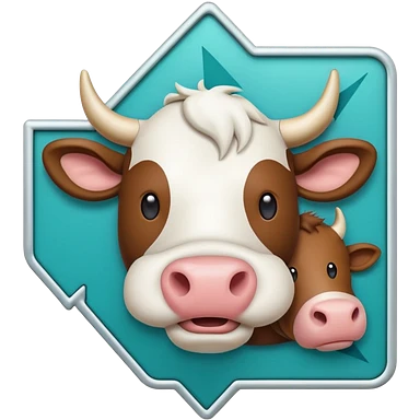 A simple emoji icon showing a cow and buffalo inside an upload frame with an upward arrow, indicating image upload for breed detection. Flat modern emoji design, soft shadows, teal and white theme, readable at small sizes, centered, no text. emoji