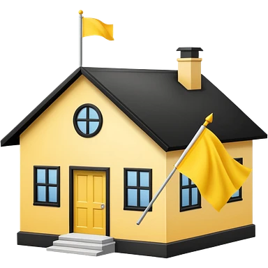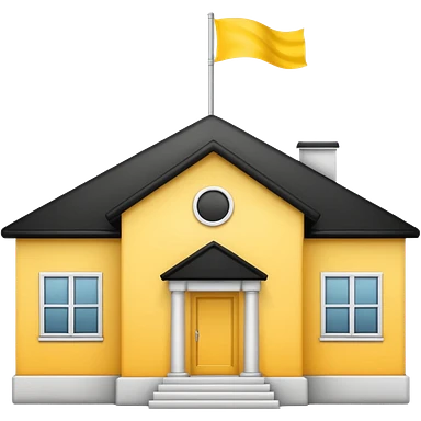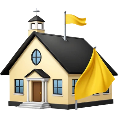 simple magic school, white background, magic school, black roof, with a big flag, big flag on a roof, big yellow flag, white school emoji | AI Emoji Generator