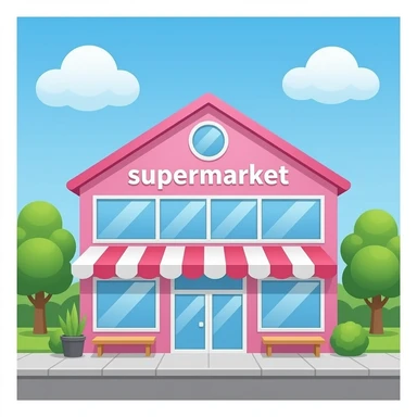A pink supermarket with floor-to-ceiling windows emoji