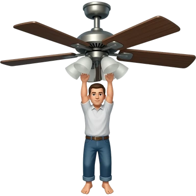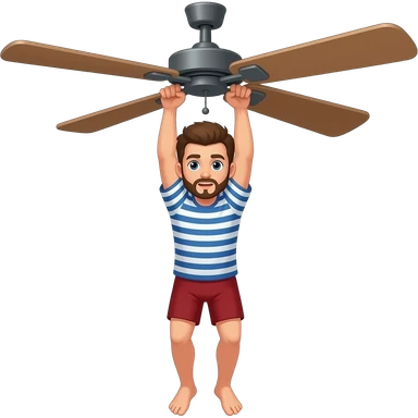 A man hanging to ceiling fan with roaf doing suicide emoji