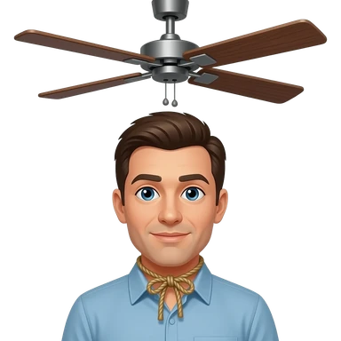 A man hanging to ceiling fan with string tied to neck doing suicide emoji