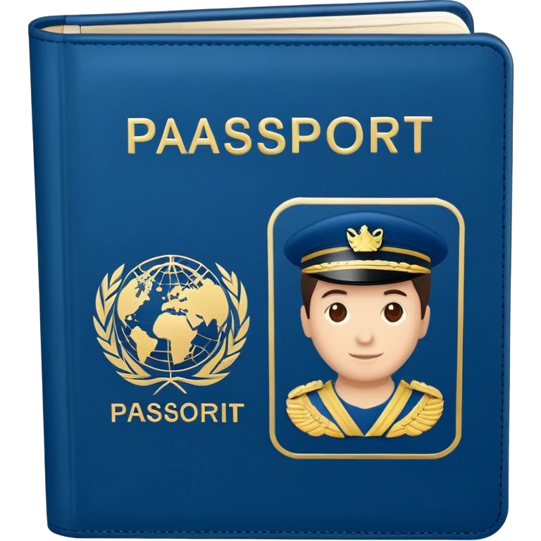 Minimal emoji icon of a black passport, matte cover, simple gold emblem, clean lighting emoji