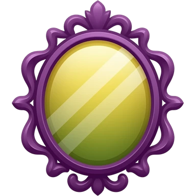 Reflect (🪞): “Simple ornate mirror in deep purple with golden yellow reflection and green mist, reflection symbol, clean mystical flat icon” emoji
