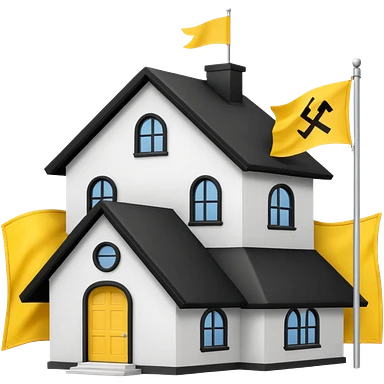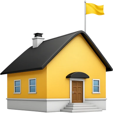 simple school, white background, magic school, black roof, with a big flag, big flag on a roof, big yellow flag, white school emoji | AI Emoji Generator
