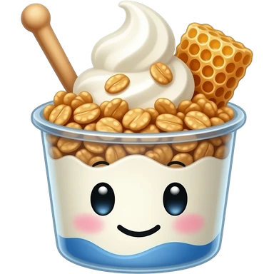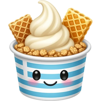 kawaii greek yogurt bowl emoji, soft serve yogurt swirl with granola and honeycomb on top, dessert cup, simple cute icon style emoji