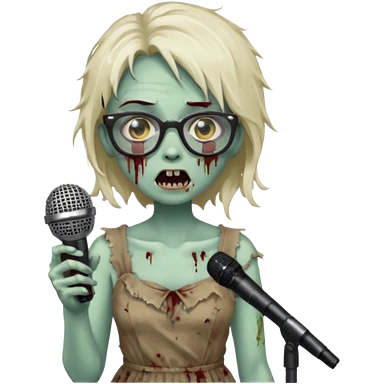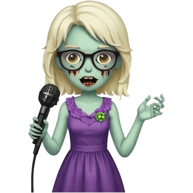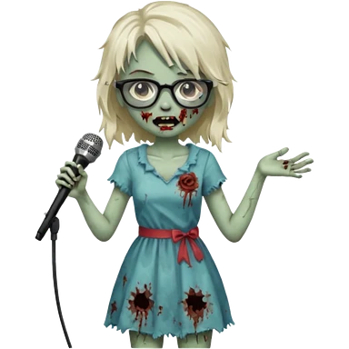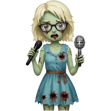 singer, Zombie girl, super happy, wearing dress, holding mic, glasses emoji