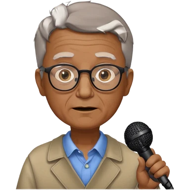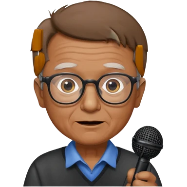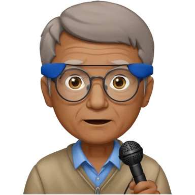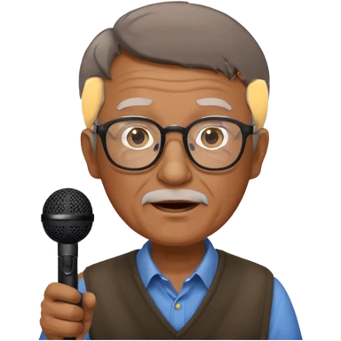 singer, Old man, brown short hair, holding mic, glasses emoji