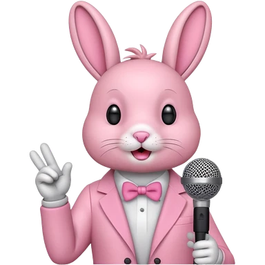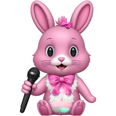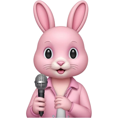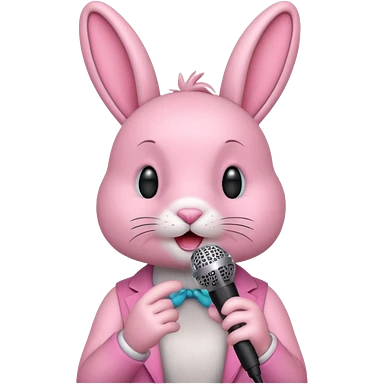 pink bunnie singing , holding mic emoji