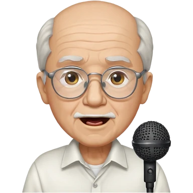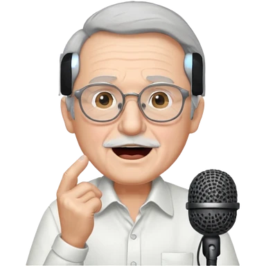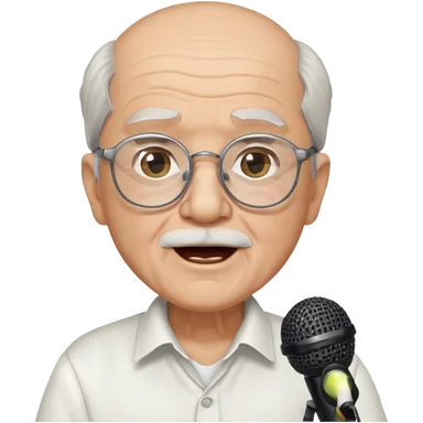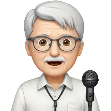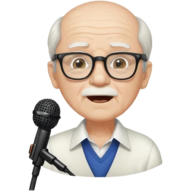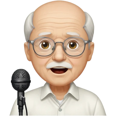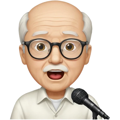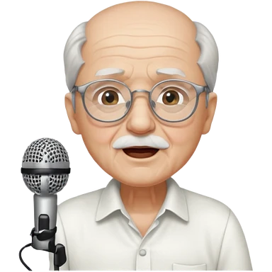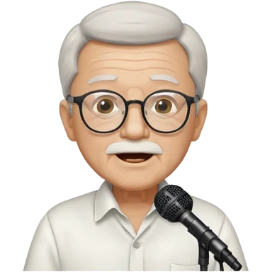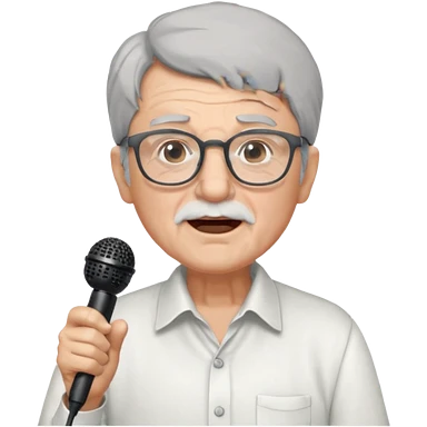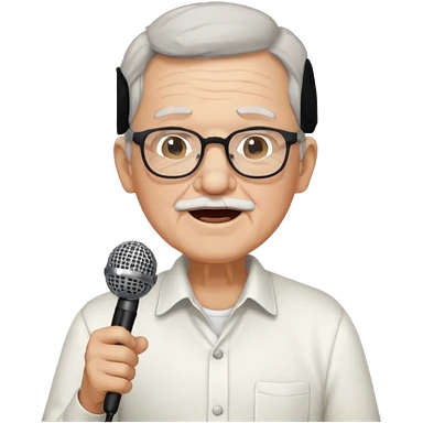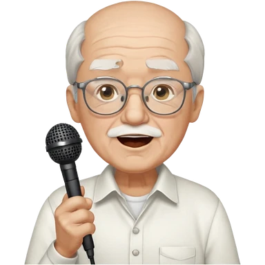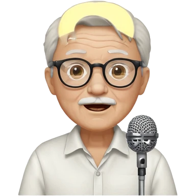 singer, Old man, singing to mic, white shirt glasses emoji