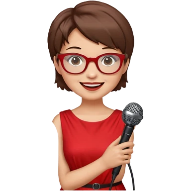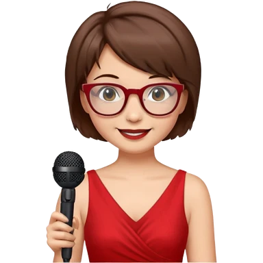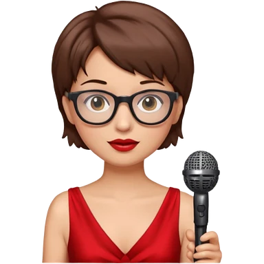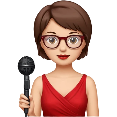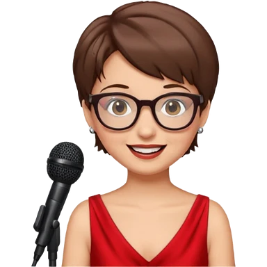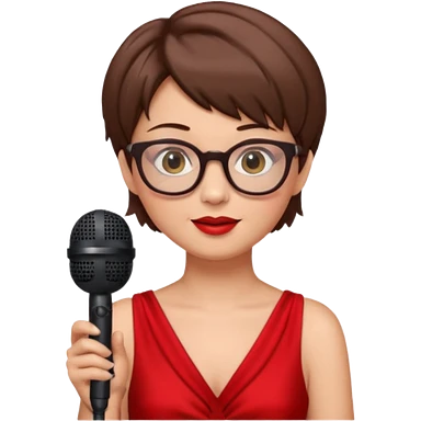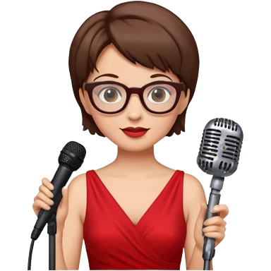 singer, Old, brown short hair, holding mic, red dress, glasses emoji