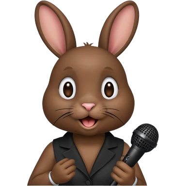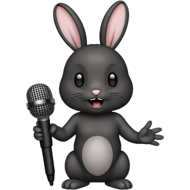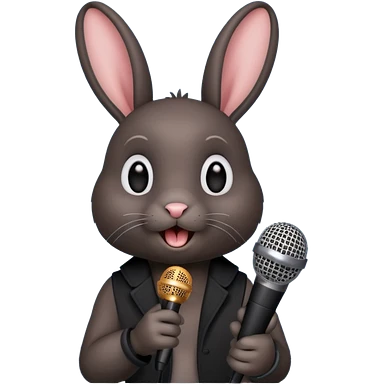 black bunnie singing , holding mic emoji