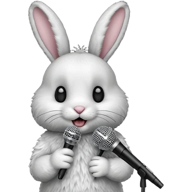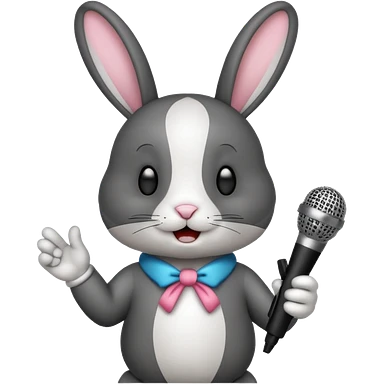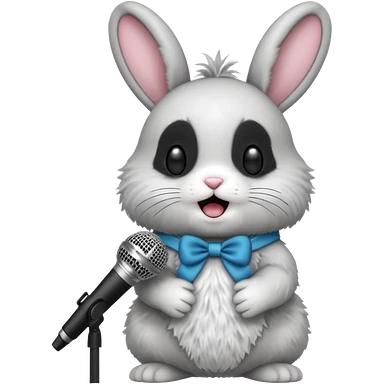 black and white bunnie singing , holding mic emoji