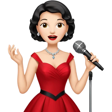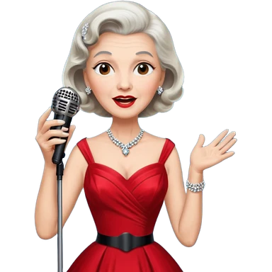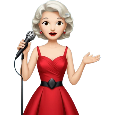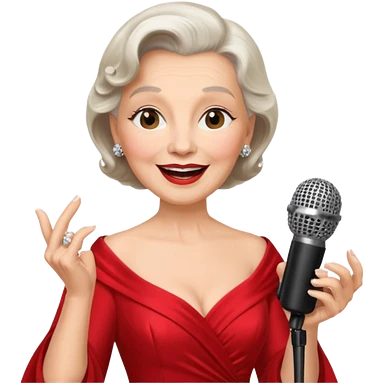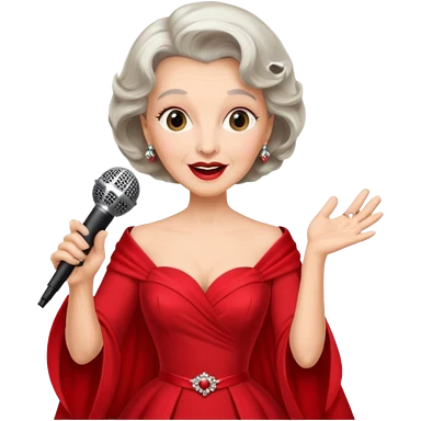 Older woman – elegant gown, 50s, diva, red dress, singing into mic emoji