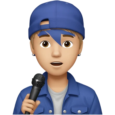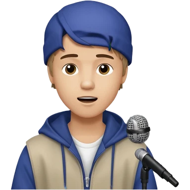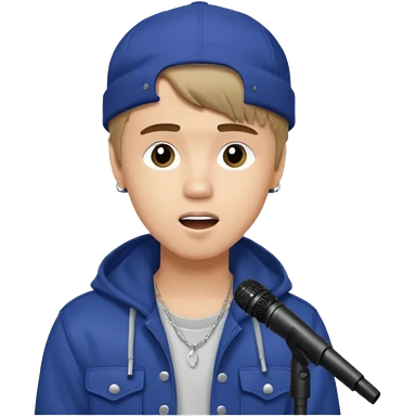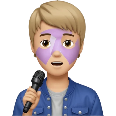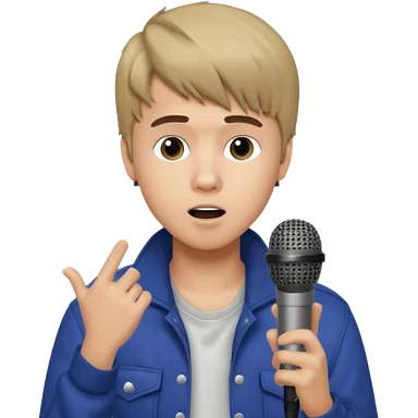 Justin Bieber, around 16, casual clothes, singing into mic emoji