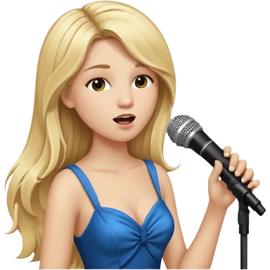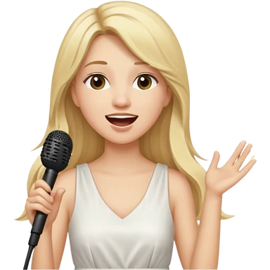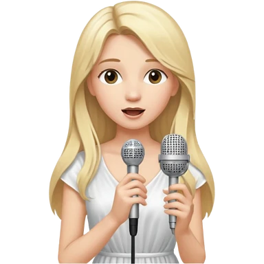 Singer Young woman – long blonde hair, around 20s, white dress, singing into mic emoji | AI Emoji Generator